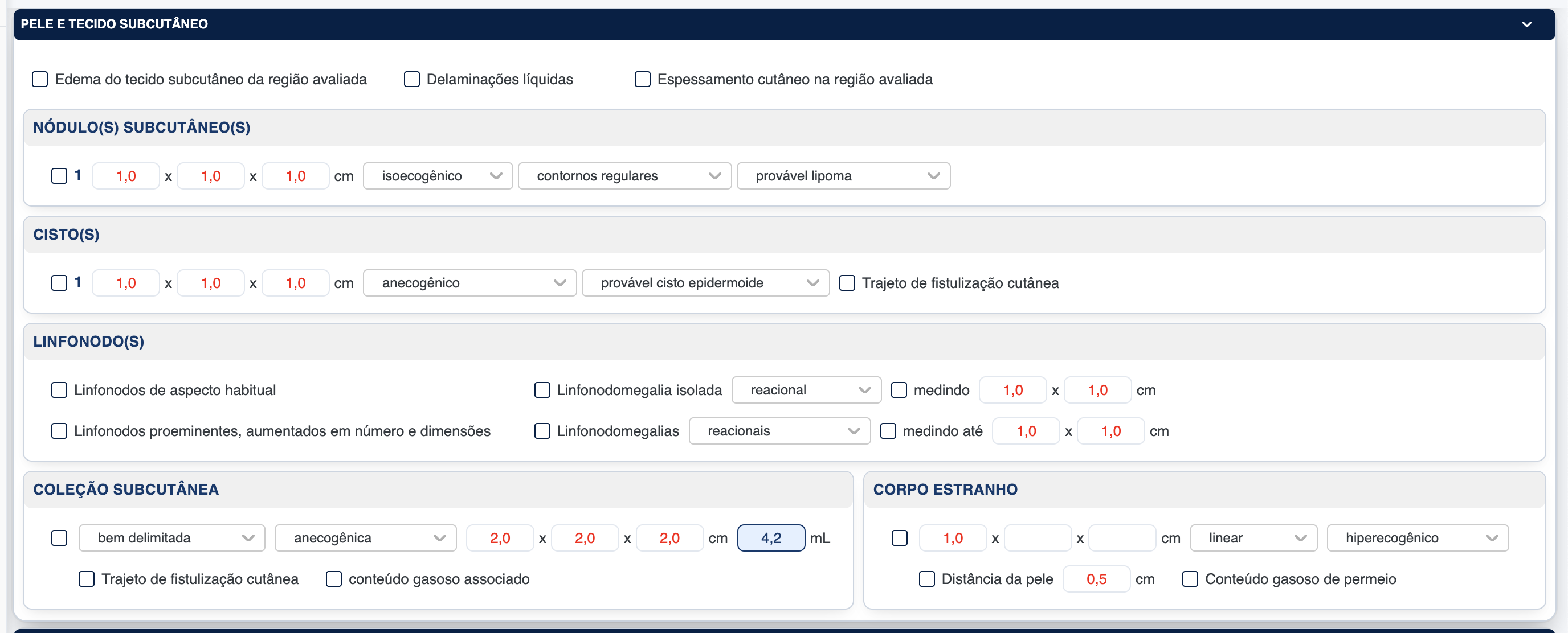 openLayout Partes-moles: Área de avaliação /Pele e tecido subcutâneo / Planos musculares