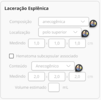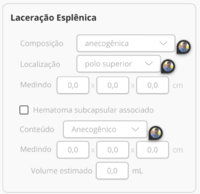 2. Baço - Laceração: obrigatório (com checkbox opcional no interior "hematoma subcapsular associado")