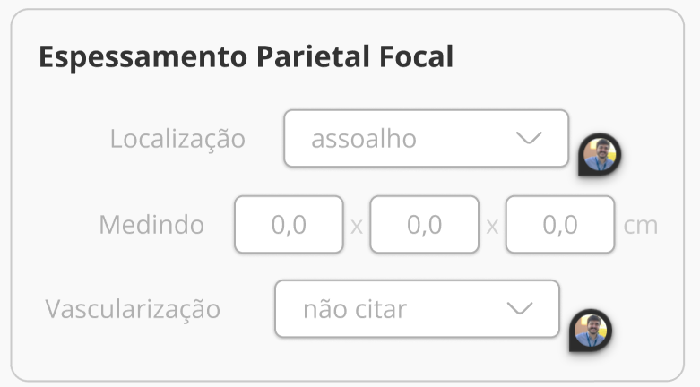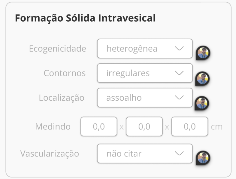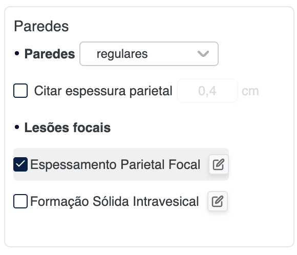 "Espessamento parietal focal" e "formação sólida intravesical" são exclusivas: o usuário pode escolher uma ou outra