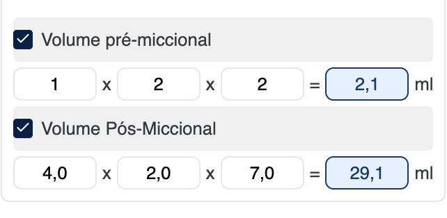 valores pré-selecionados pós-miccional: está como 1,0 mas podemos deixar vazio mesmo em todos os campos (para não ter nenhum cálculo feito) -
