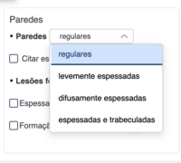 Caixa de seleção: regulares / levemente espessadas / espessadas / espessadas e trabeculadas -
