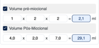 valores pré-selecionados pré-miccional: está como 1,0 mas podemos deixar vazio mesmo em todos os campos (para não ter nenhum cálculo feito)