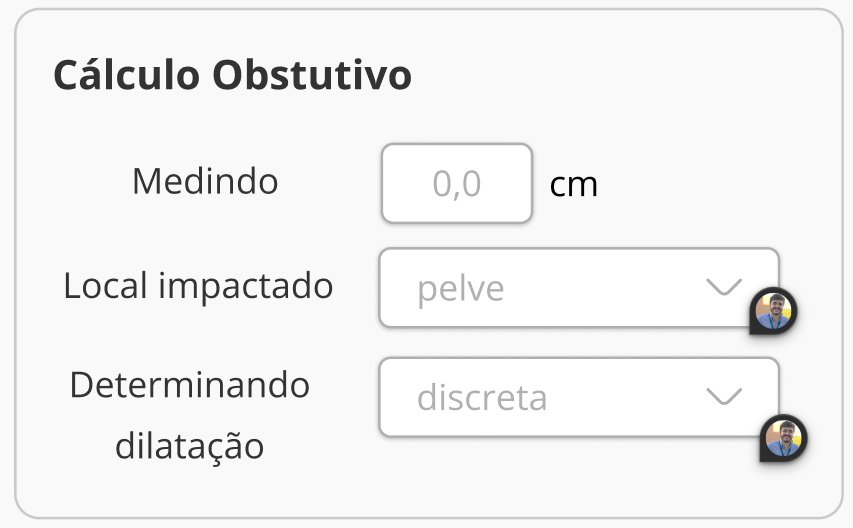 - opções da caixa de seleção "local impactado": pelve renal / terço proximal / cruzamento ilíaco / terço distal / meato ureteral