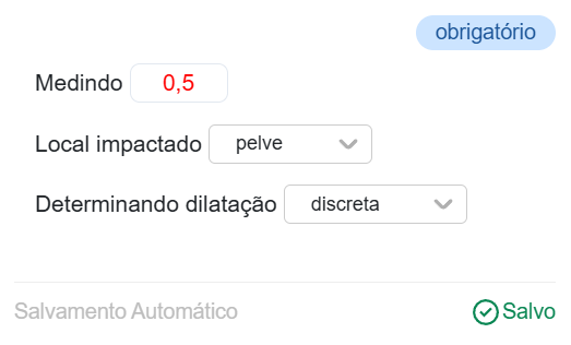 - opções da caixa de seleção "determinando dilatação": discreta / moderada / acentuada / não significativa
