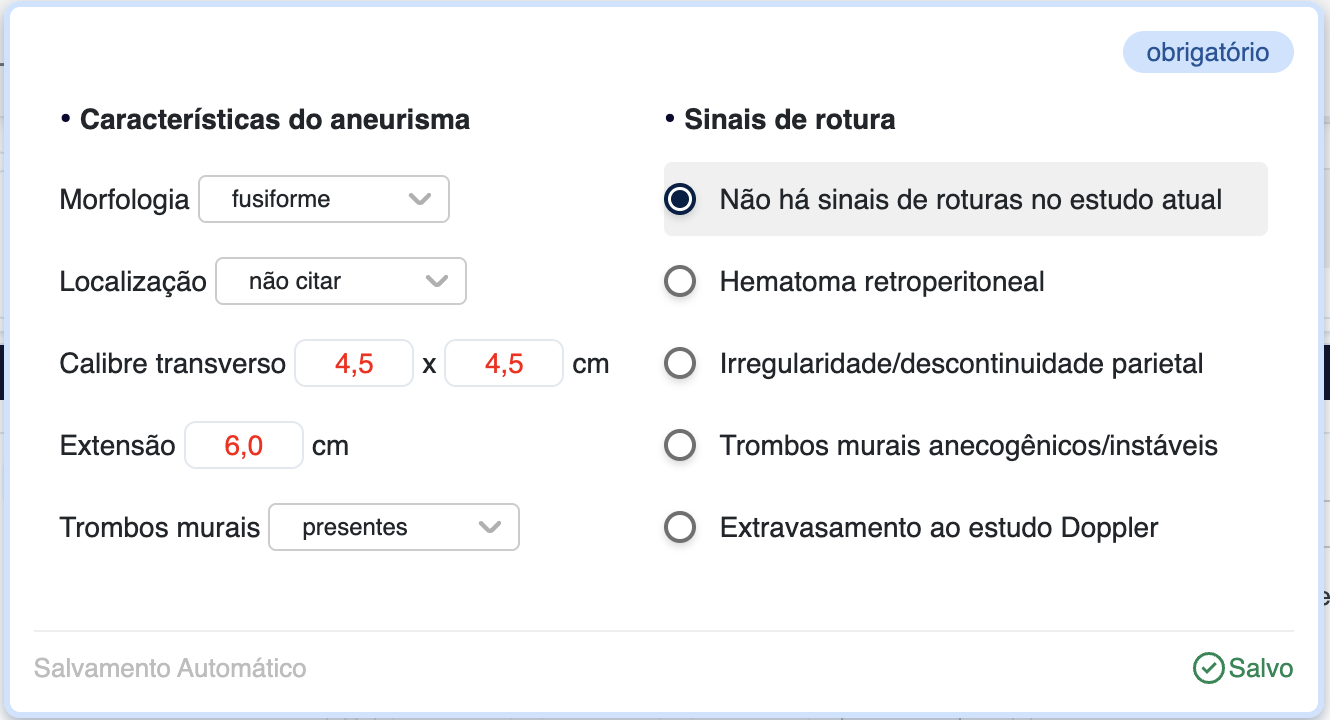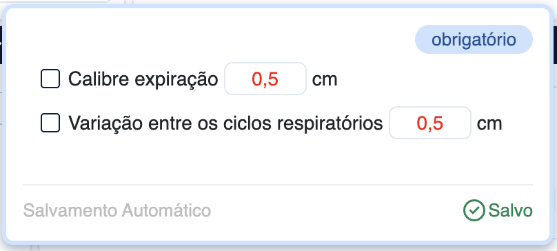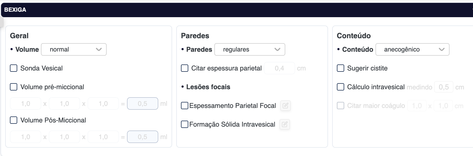 2. Ajustar o espaçamento entre o checkbox e as opções "espessamento parietal focal" e "Formação sólida intravesical"