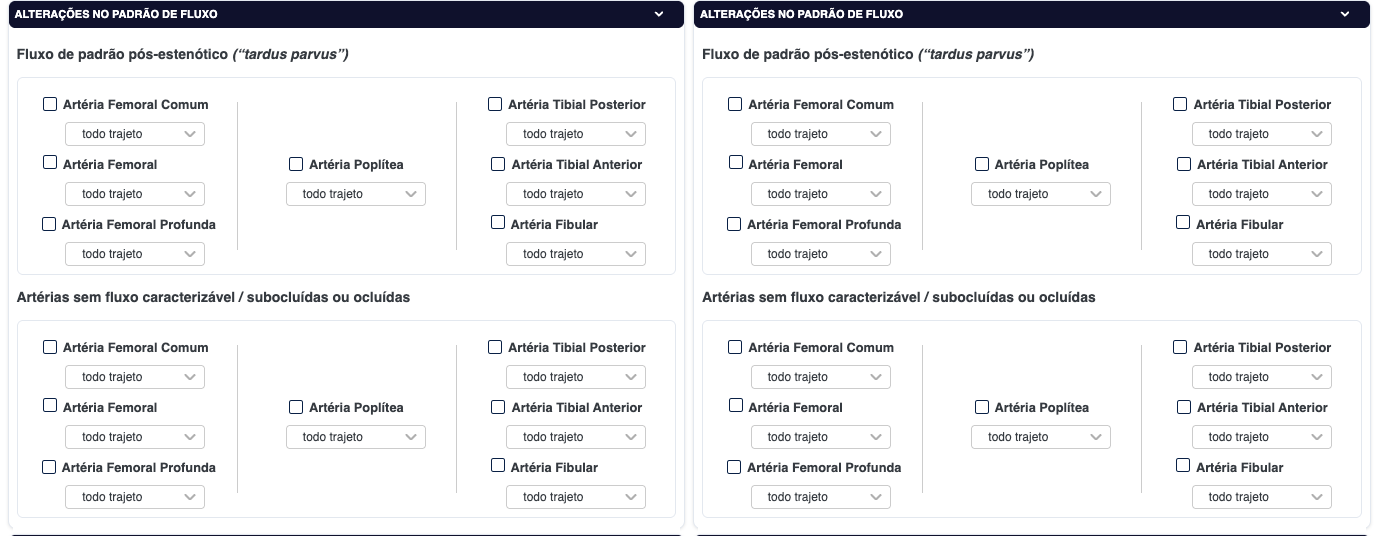 O Objetivo dessa parte é permitir o usuário fazer um laudo dos dois lados ao mesmo tempo ou apenas de um lado específico.. Em vários exames essa questão se repete, daí estava pensando em como fazer isso da melhor forma.. Além disso, o campo de cima é referente a qualquer um dos lados, mas realmente não ficou muito bom ali em cima...