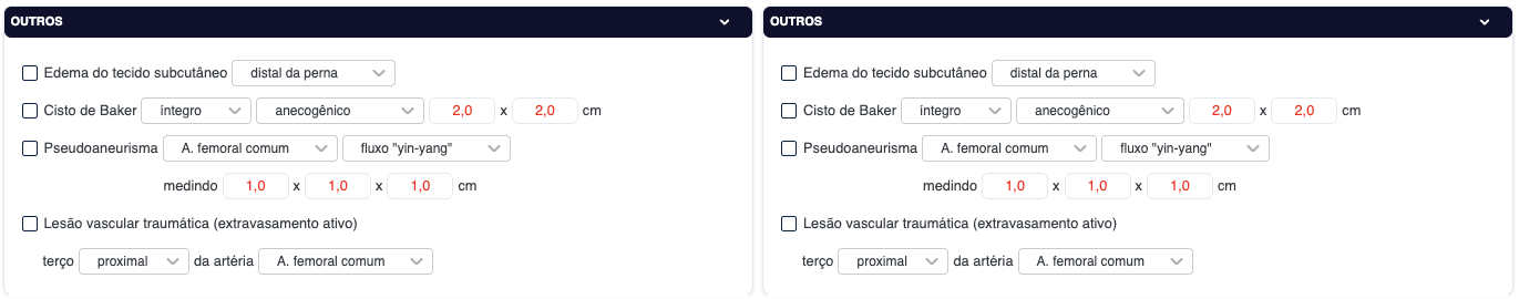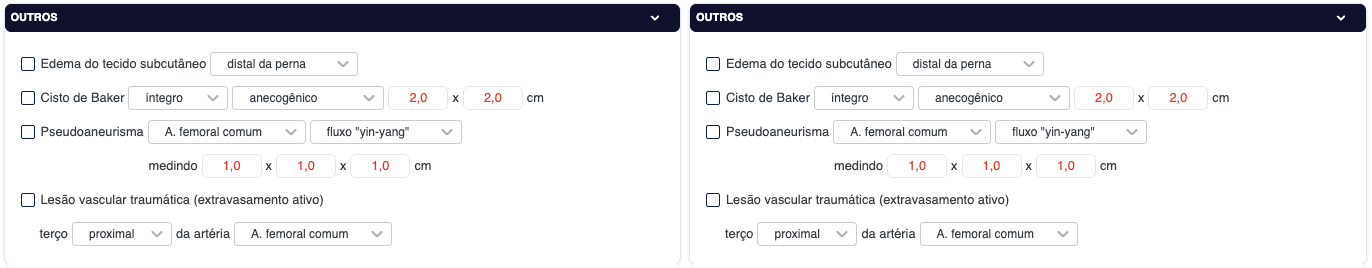 Um outro detalhe que acabou passando batido.. esses checkbox de MI DIREITO e MI ESQUERDO precisam estar ativos de base, ao usuário abrir o exame.. não consigo configurar isso atualmente no nosso editor