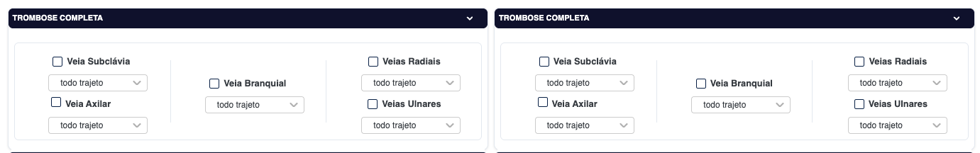 - Outros > Protocolo de investigação para síndrome do desfiladeiro torácico Aqui a primeira alternativa do botão rádio só ficou pré-selecionada do lado esquerdo ✅