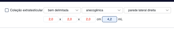 • ajustar medidas pré-preenchidas da "coleção extratesticular" no módulo de paredes da bolsa testicular para 2,0 cm nos três campos