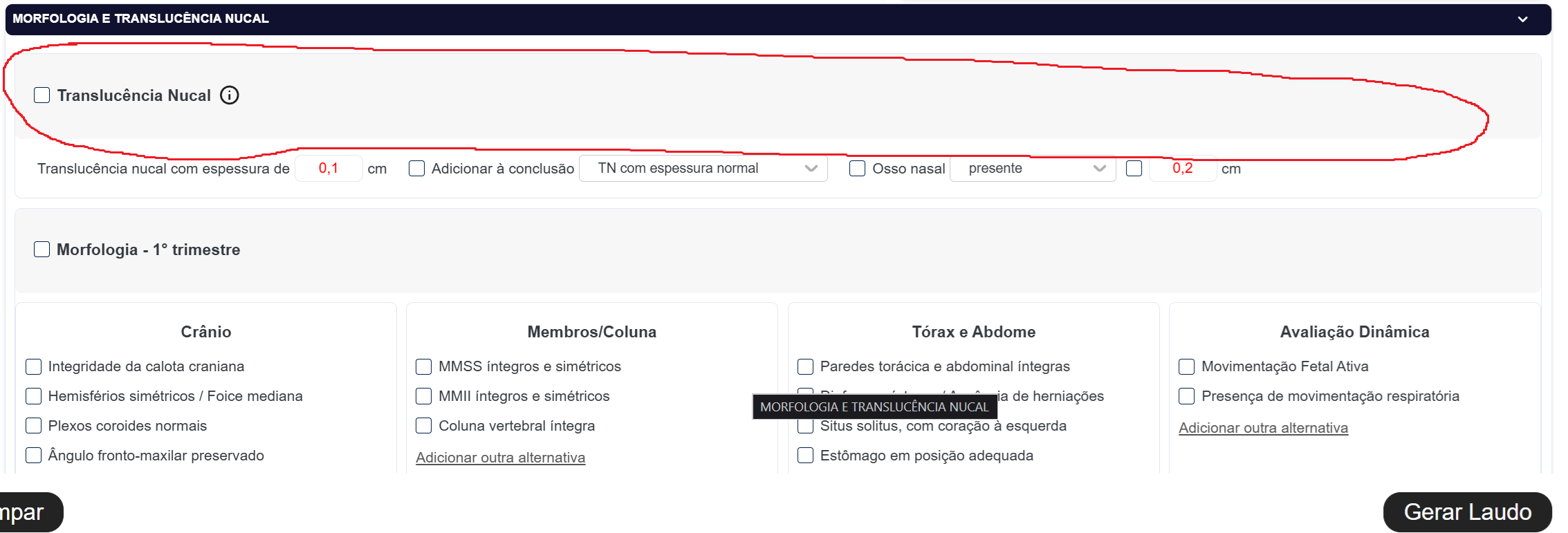 • "adicionar à conclusão" no submódulo de translucência nucal